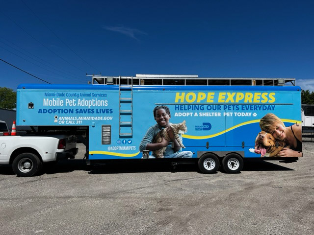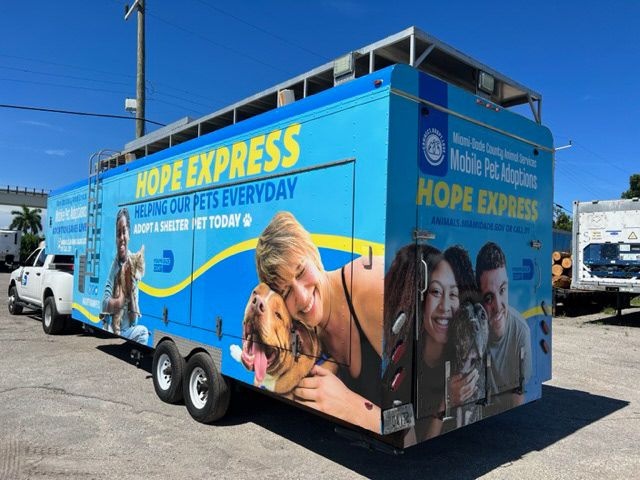 This project involved designing a vehicle wrap for an Animal Services adoption bus called the HOPE EXPRESS, created to increase visibility and drive awareness for pet adoption events throughout the community. Using Animal Services’ primary brand colors and a playful, approachable visual style, the wrap was designed to feel welcoming, friendly, and easily recognizable from a distance. The vehicle functions as a mobile, in-person adoption space, allowing residents to meet and adopt pets directly from the bus. It can travel throughout the county showcasing adoptable pets.