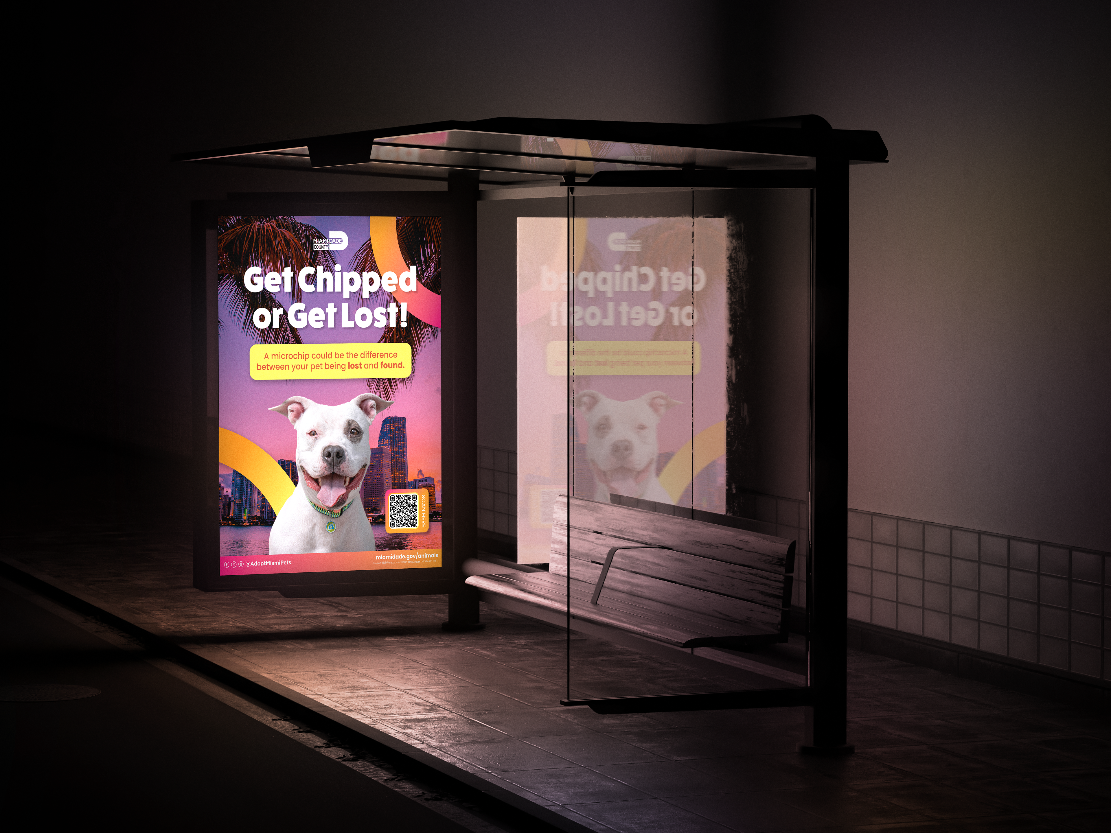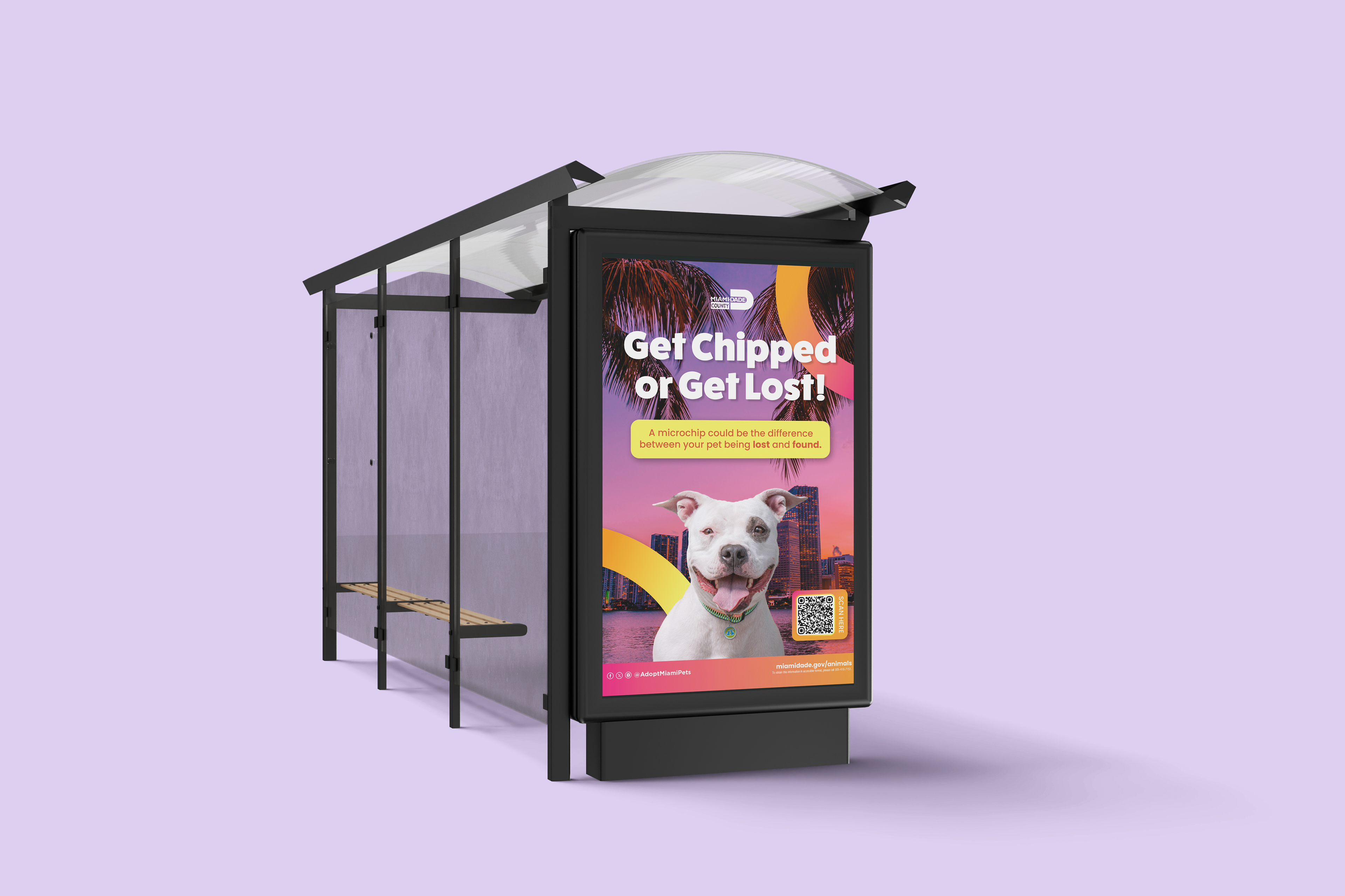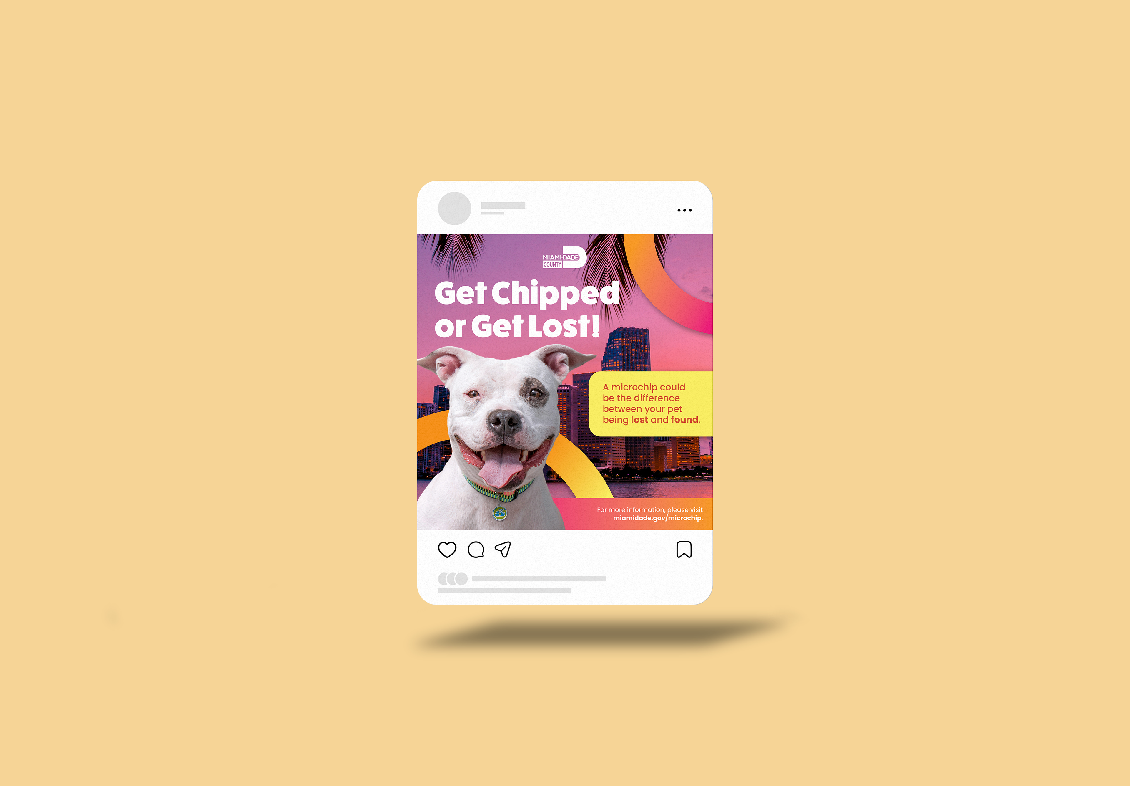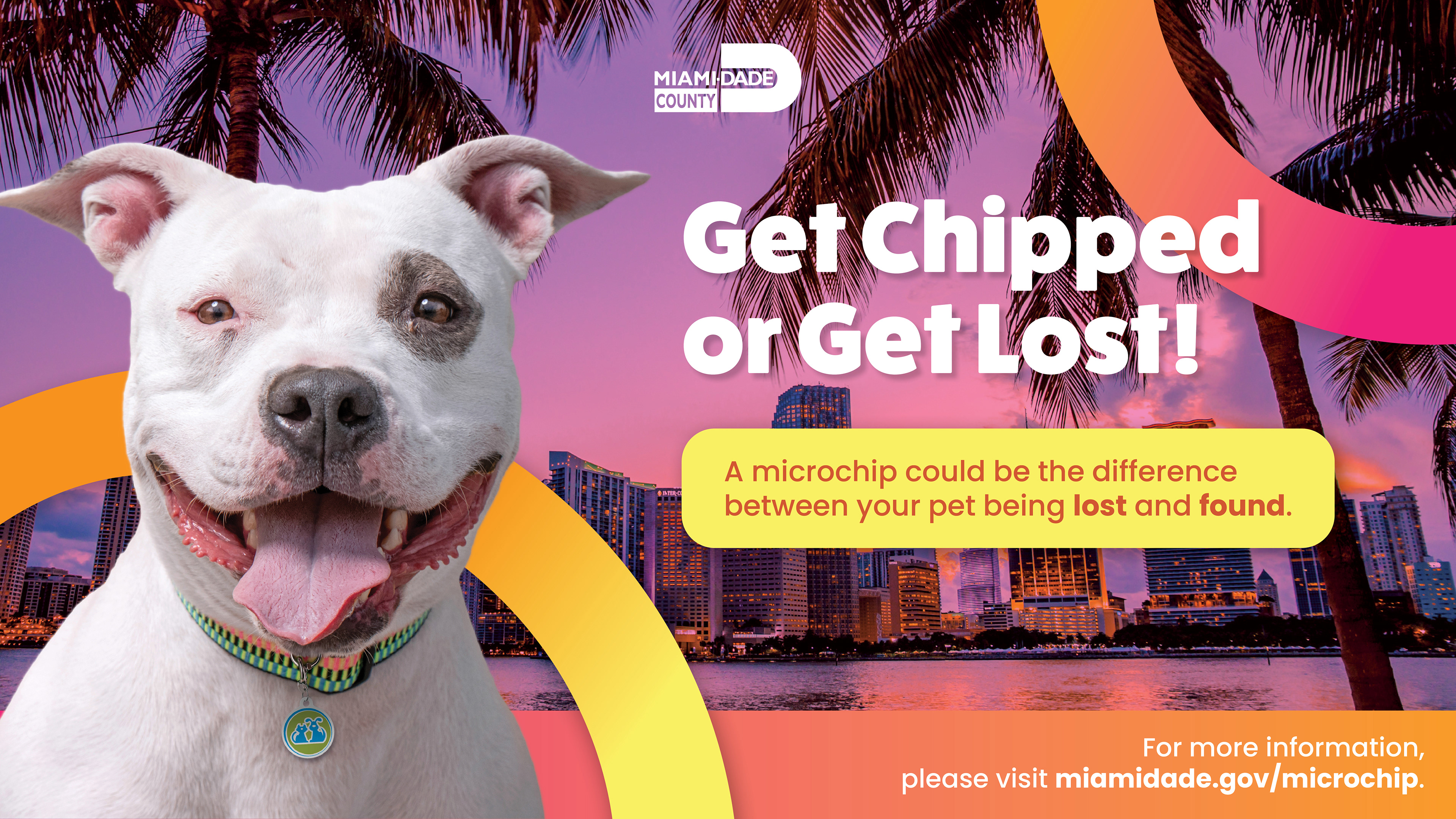 Get Chipped or Get Lost is a vibrant, Miami-forward campaign promoting pet microchipping across Miami-Dade County. Inspired by the city’s bold color palette and skyline, the visual system brings local flavor and personality to an important message. We wanted to make it feel relevant, fun, and unmistakably Miami.